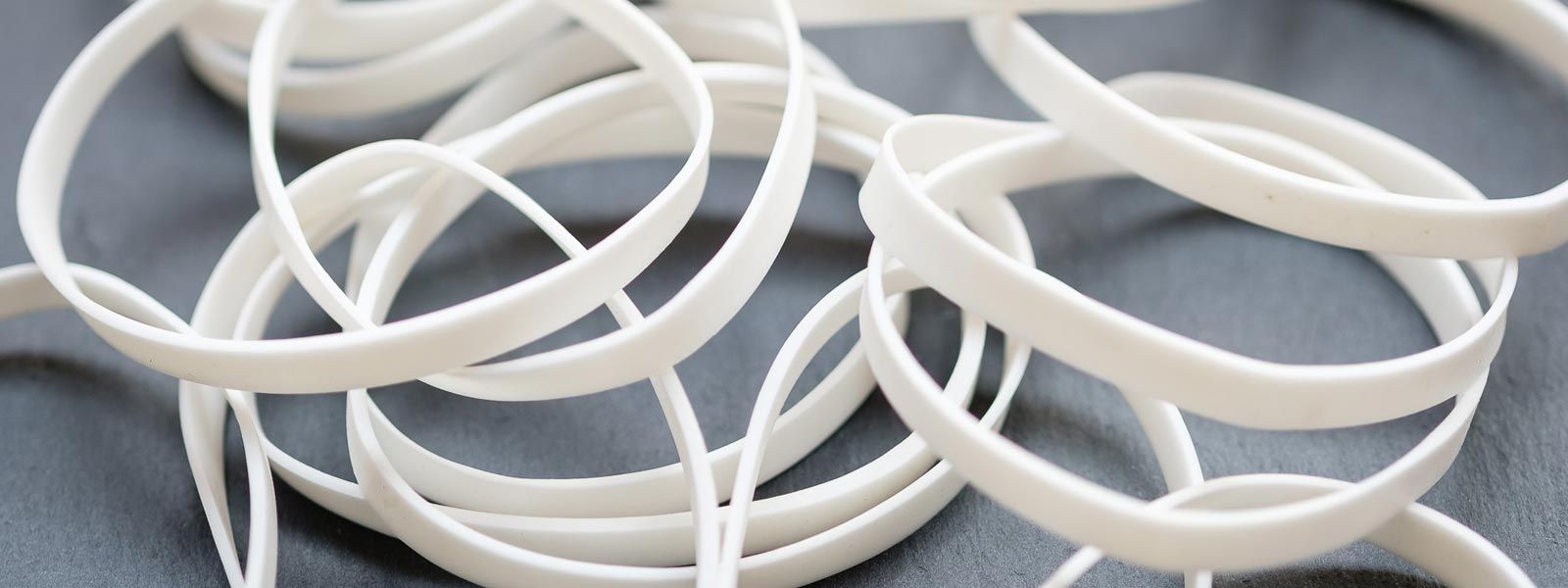 Sappiamo come fornire risposte semplici alle diverse esigenze dei nostri clienti in materia di gomma tecnica. Perché con i nostri moderni impianti di produzione forniamo elastici su misura con le proprietà richieste in diversi colori, diametri e larghezze in base al vostro ordine e in breve tempo.