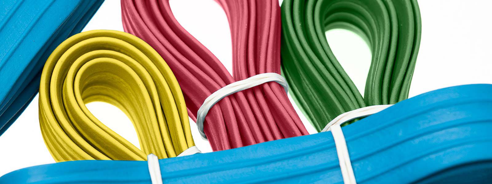 Le fasce elastiche H+D sono realizzate in gomma naturale. Ciò significa che hanno la sensazione naturale e l'elasticità del lattice e sono realizzati al 100% con la materia prima rinnovabile dell'albero della gomma. Gli elastici rimangono esattamente in posizione anche durante il trasporto delle merci grazie al naturale attrito statico della gomma.